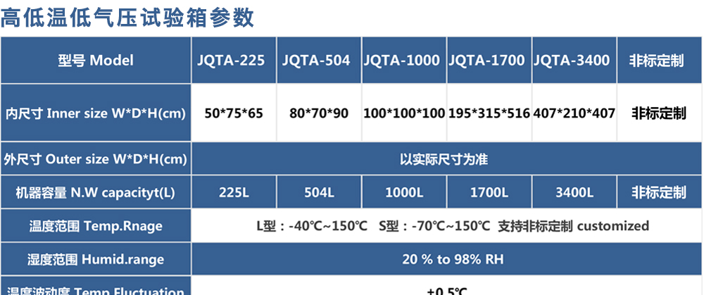 高低溫低氣壓試驗箱也稱為:低氣壓試驗機、低氣壓(高度)試驗箱、高低溫濕熱低氣壓試驗箱,適用于電工、電子產品及其他產品、零部件及材料進行低氣壓試驗的環境試驗箱設備,可滿足電工電子產品及軍用裝備等環境試驗 - 高溫試驗、低溫試驗、溫度變化試驗、低氣壓試驗、溫度高度試驗、低溫/低氣壓綜合試驗、高溫/低氣壓綜合試驗,適用于電工、電子、儀器儀表及其它產品零部件及材料在高低溫交變環境下貯存、運輸、使用時的適應性試驗。